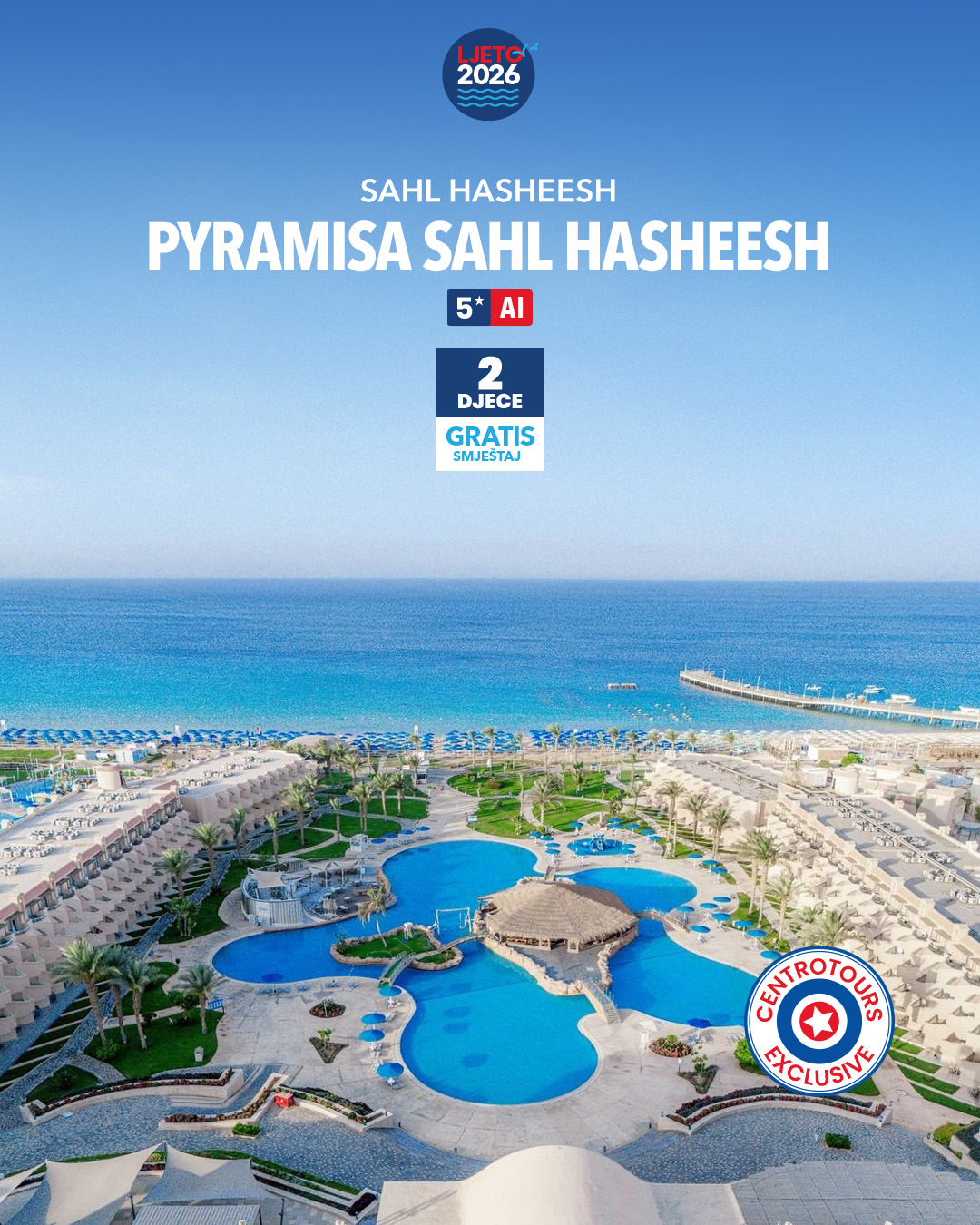 Avionom iz Tuzle letovi od 15.06.-07.09.2026. svakog ponedjeljka!!!!!!!!!!!!!! Cjenovnik br.1-važi za rezervacije I uplate avansa od 20% do 31.01.2026. U cijenu paket aranžmana uračunato je: - povratna avio karta na relaciji Tuzla – Hurgada – Tuzla, avio kompanija Air Cairo (ekonomska klas